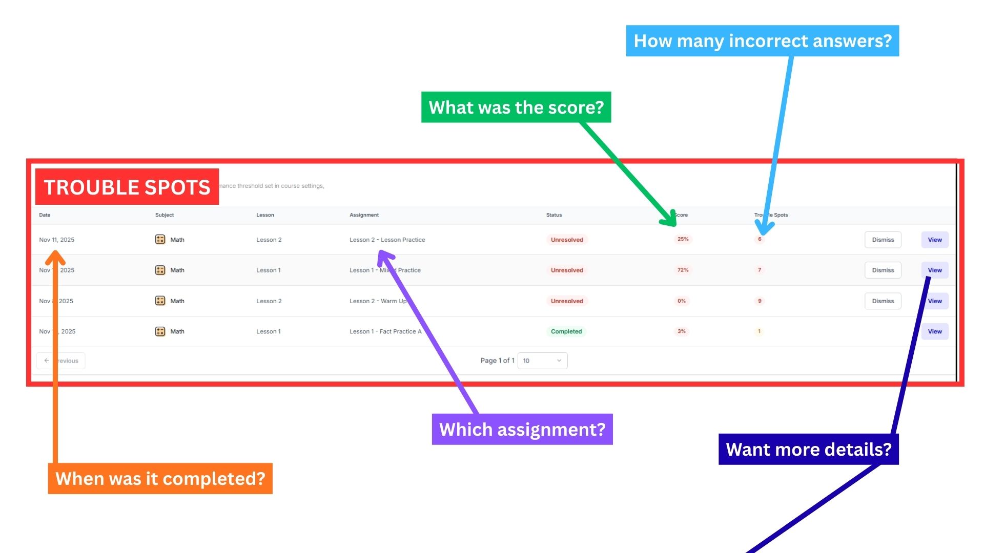 Trouble Spots - How can I quickly identify where my student needs my help?